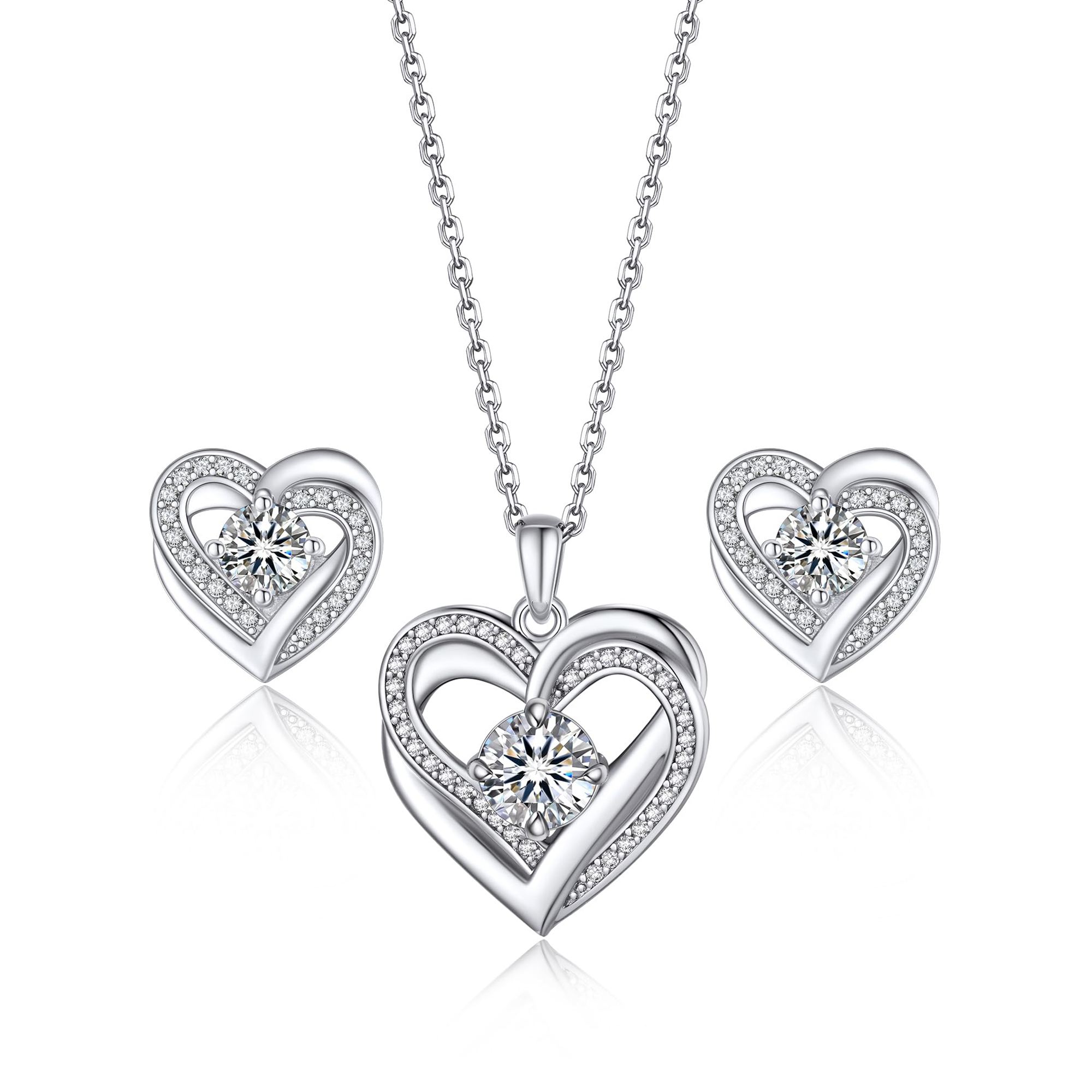MomentWish Women Simulated Diamond Jewelry Set 1 Carat Pendant Necklace and 1 Carat Earrings for Wedding,Birthday,Mother's Day