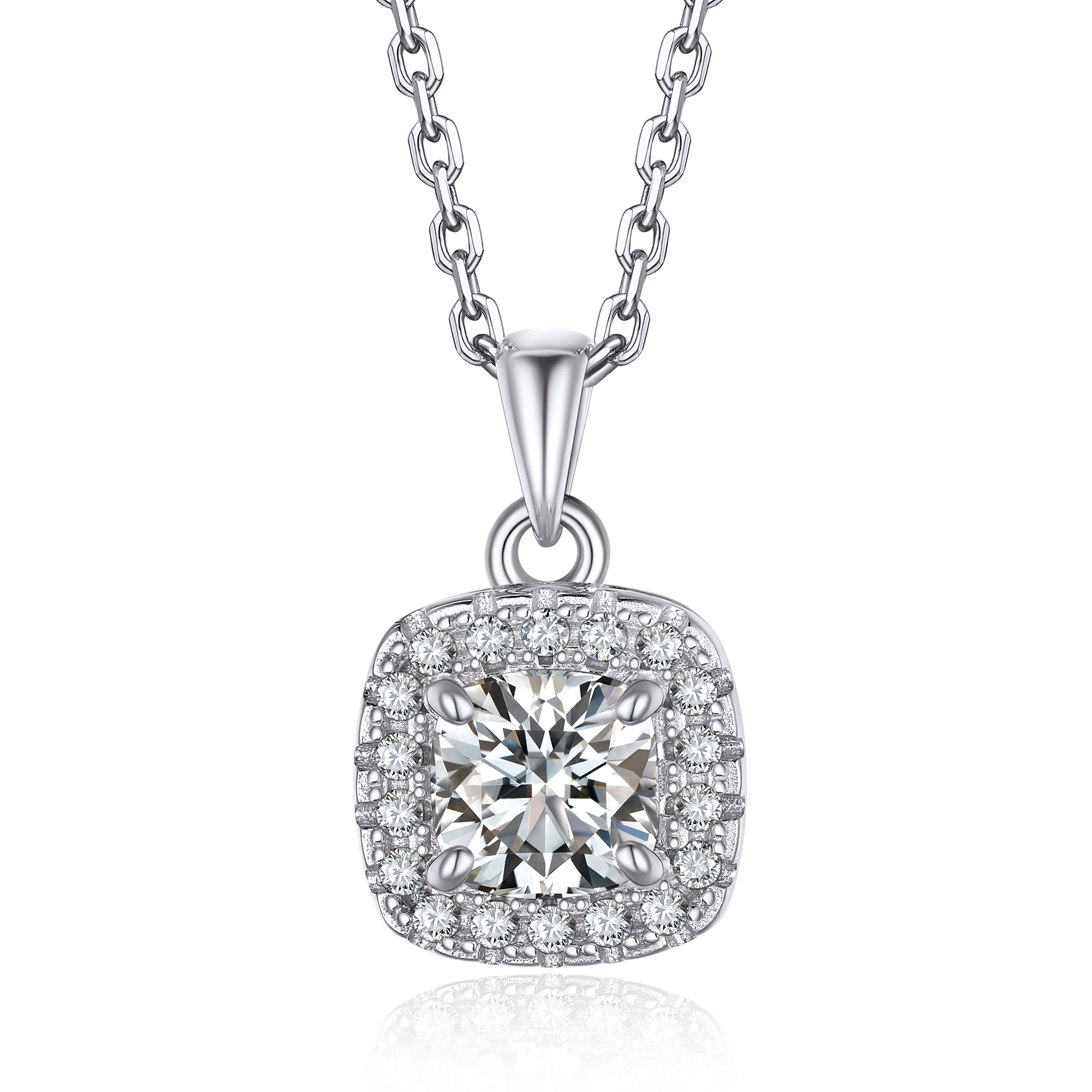 MomentWish Cushion Moissanite Necklace for Women, Simulated Diamond Pendant for Her 925 Sterling Silver Halo Necklace