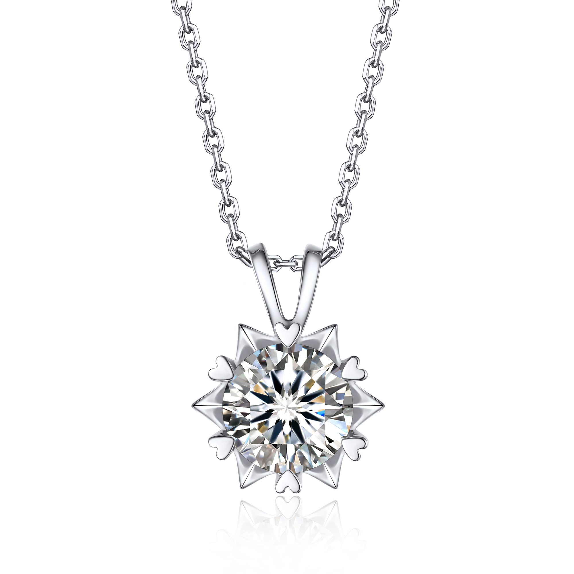 MomentWish Rose Heart Necklace 1Carat Moissanite Love Necklace for Her 925 Sterling Silver Flower Necklace