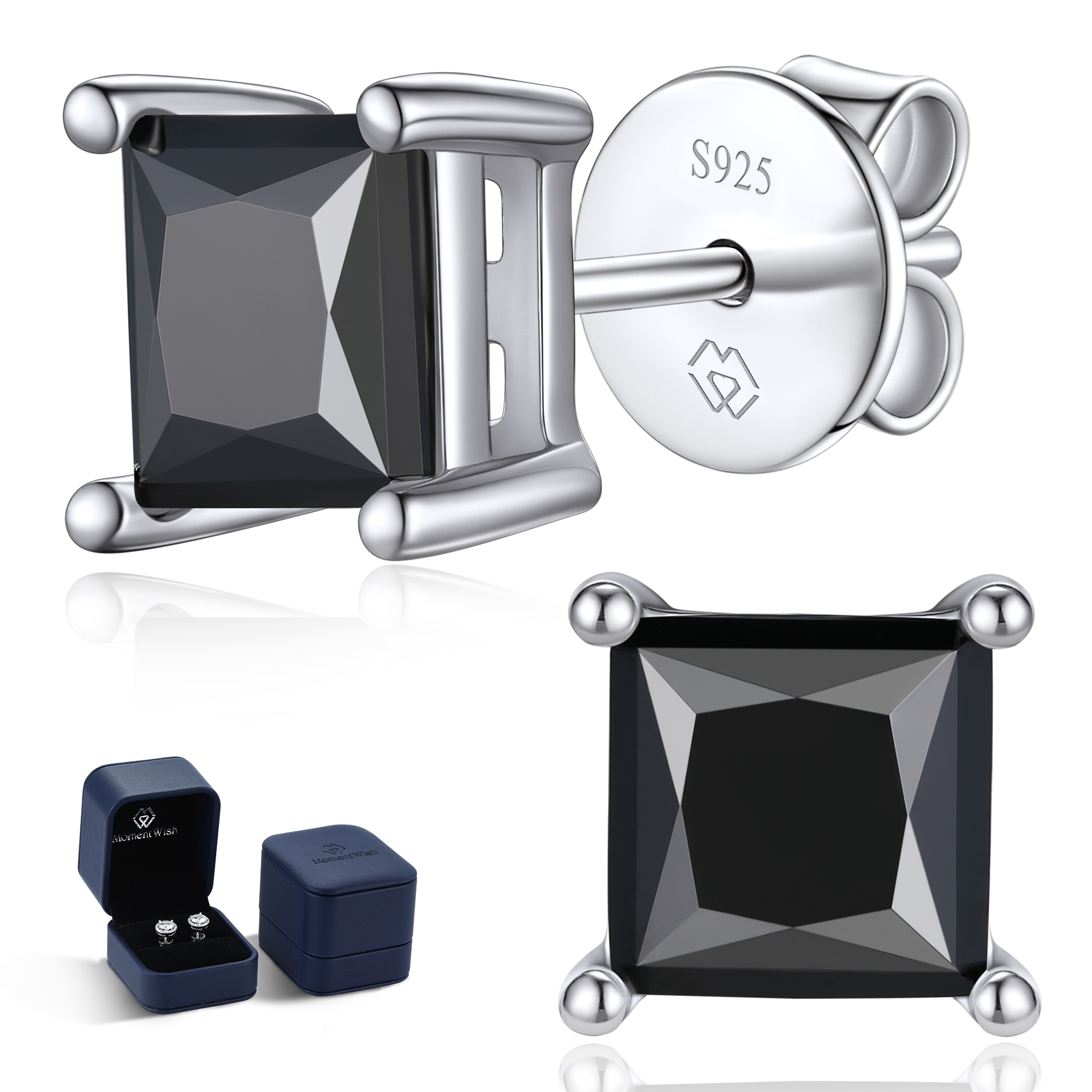 MomentWish Princess Cut Black Moissanite Stud Earrings For Women Men