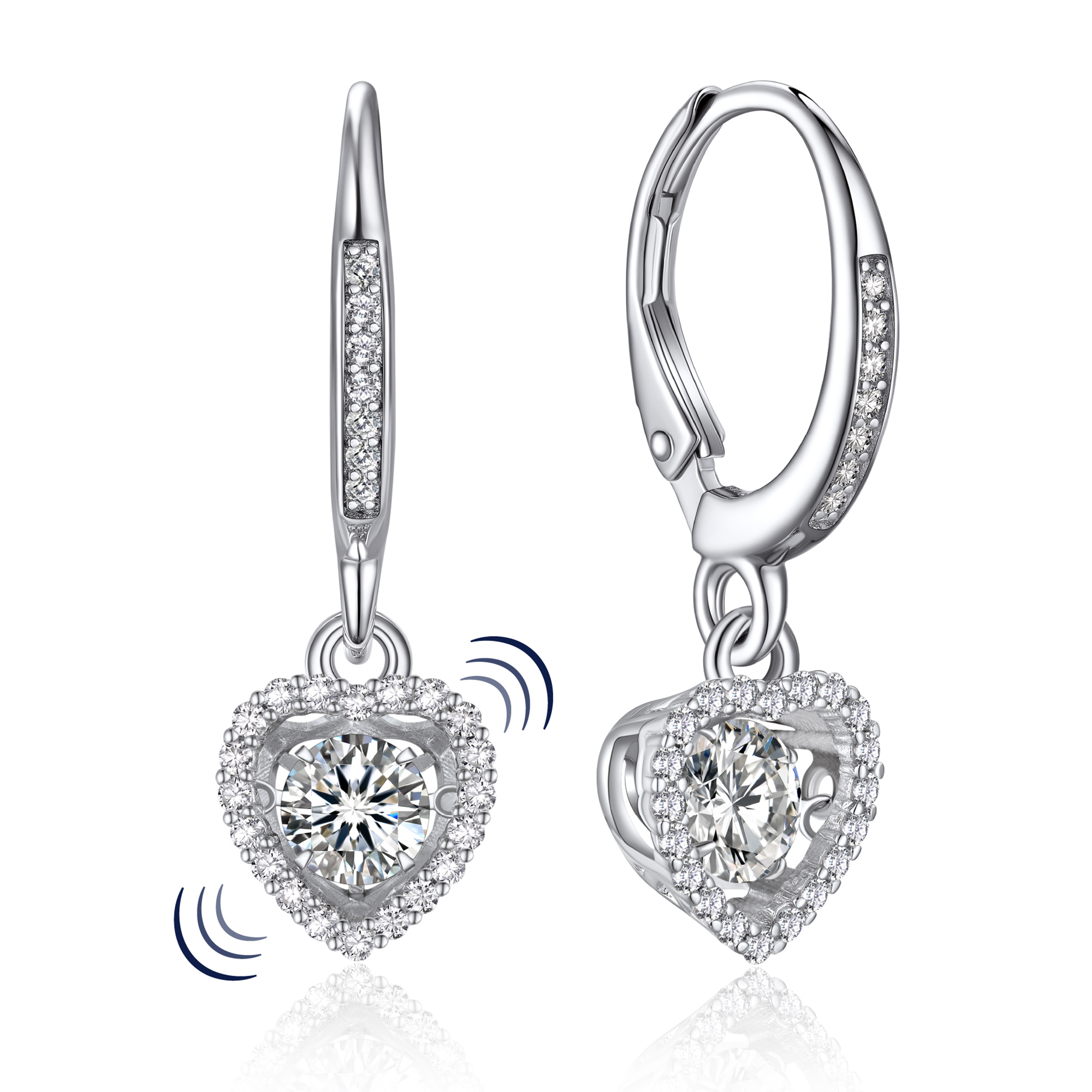 MomentWish Moissanite Hoop Earrings Heart Huggie Earrings For Women