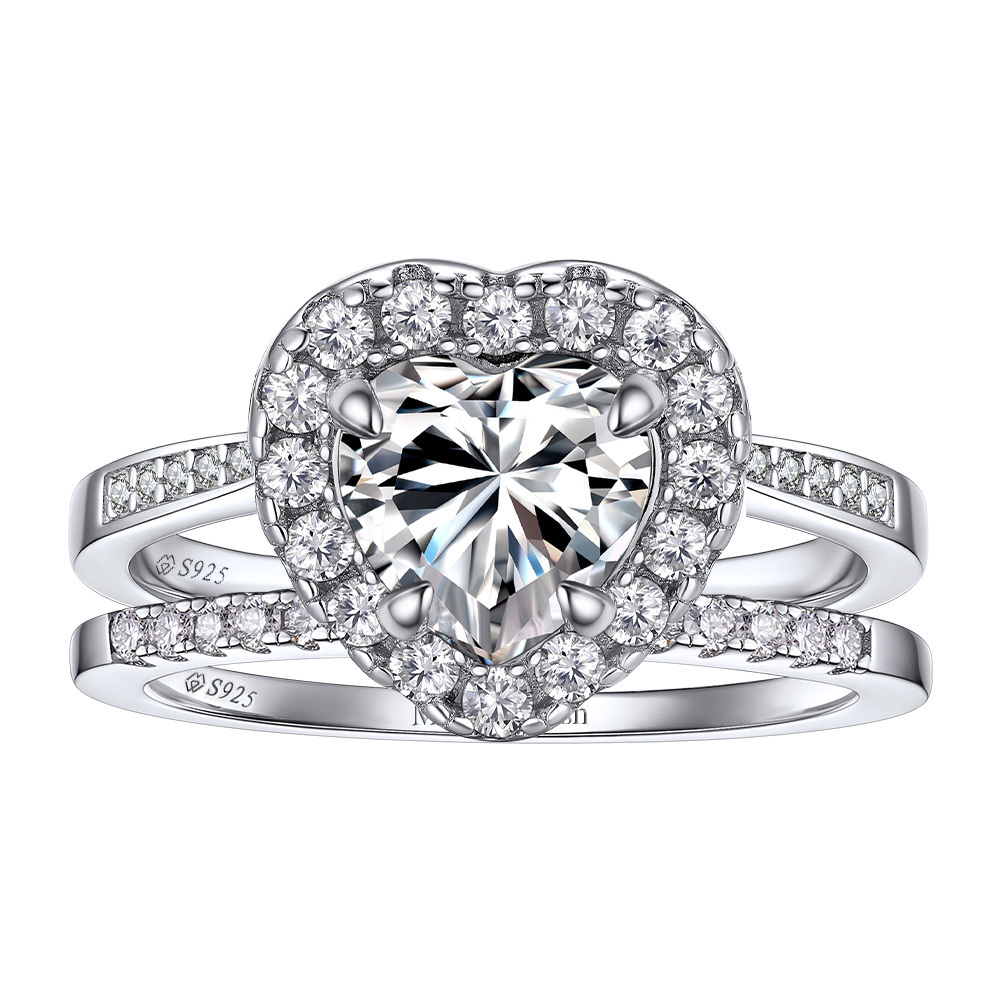 【GRA Certificate】The heart promise ring are crafted in superior S925 sterling silver, tarnish and discolor resistant, and is suitable for daily wear. The sterling silver heart rings, 4-Prong setting with D Color VVS1 moissanite, 1 Carat(6.5*6.5mm) main stone, 26 pieces accents, total 1.18 carats. All moissanite had passed Diamond Tester and came with GRA certificate.