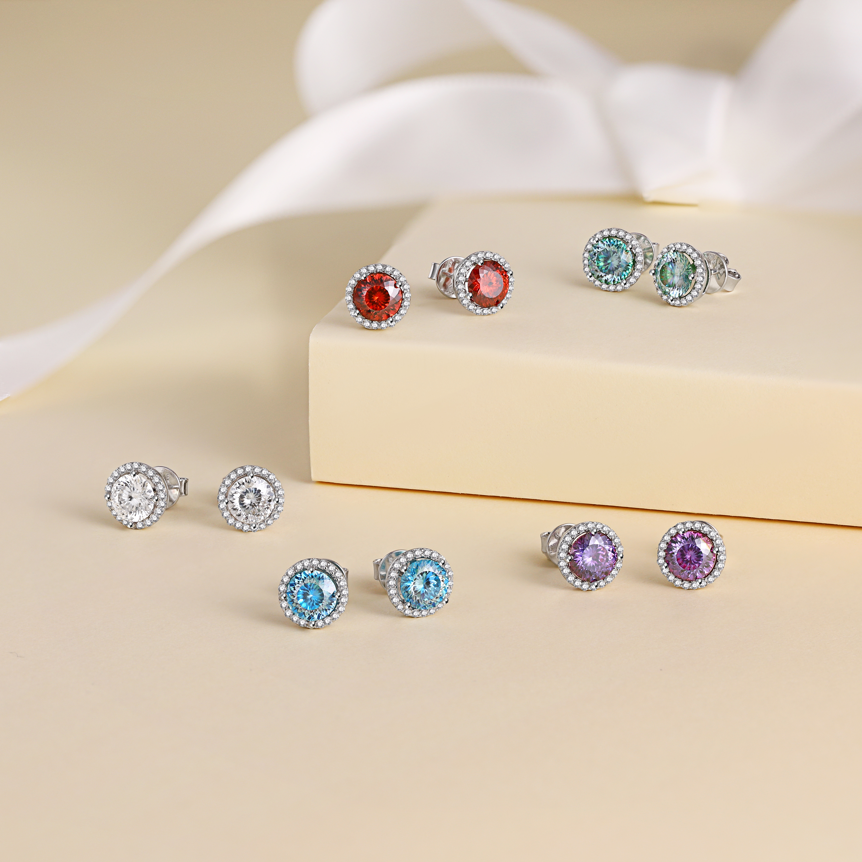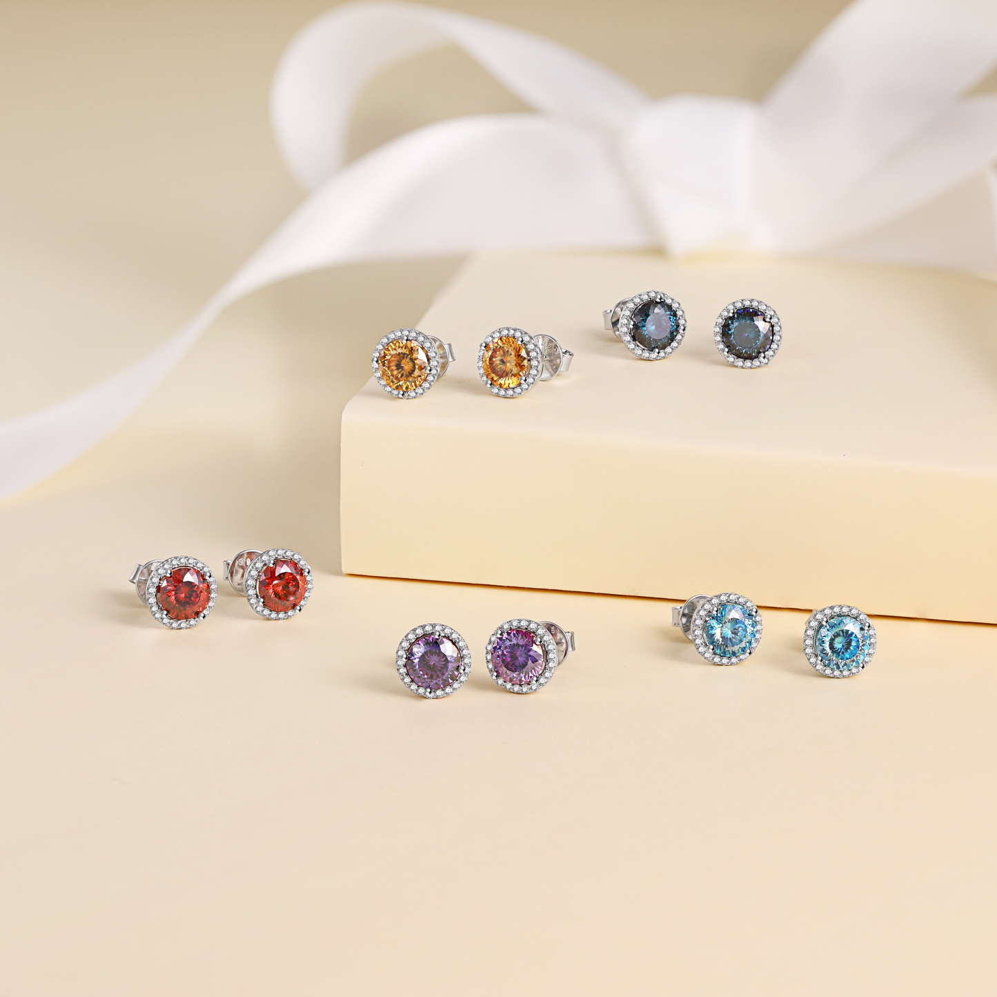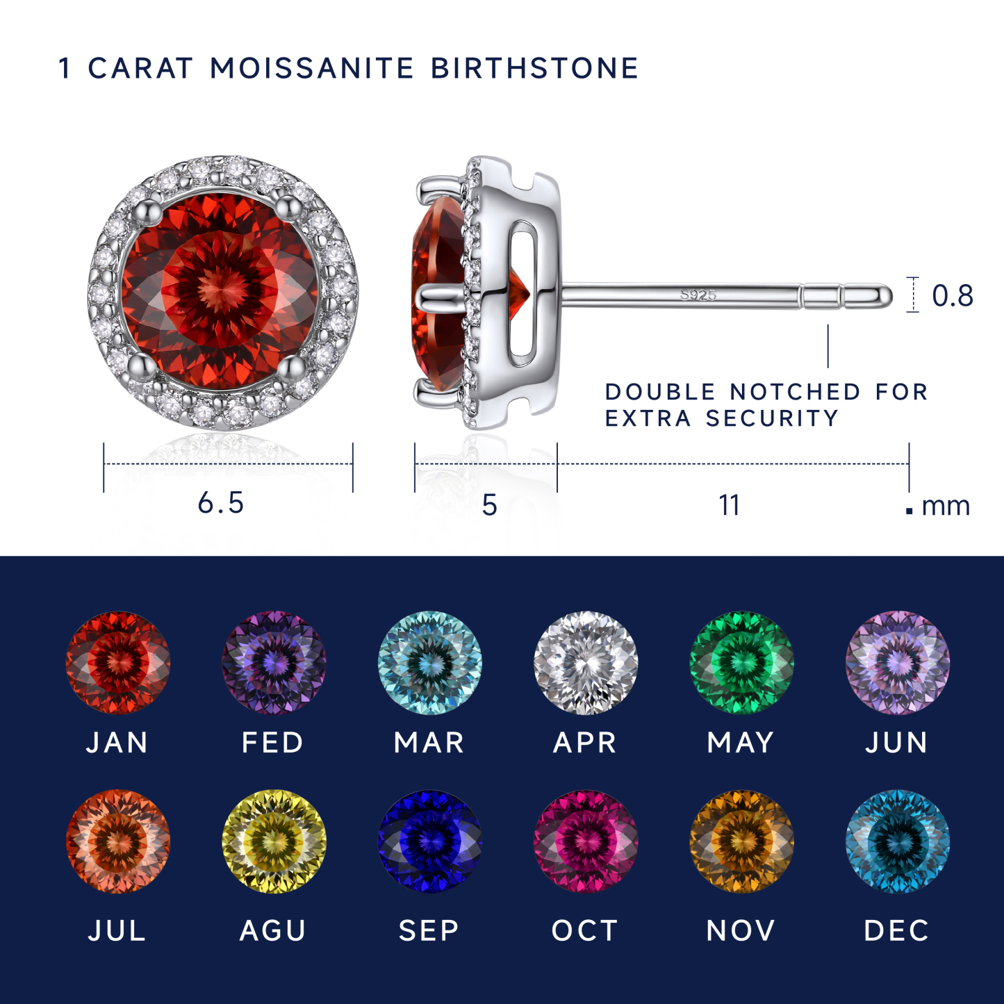 These gorgeous Moissanite birthstone stud earrings showcase a 1 CT beautifully round cut D-color moissanite stone made by MomentWish. Crafted in 925 sterling silver with a halo side gem design made of moissanite. This halo Moissanite Birthstone earrings will make a sentimental surprise for your lover.