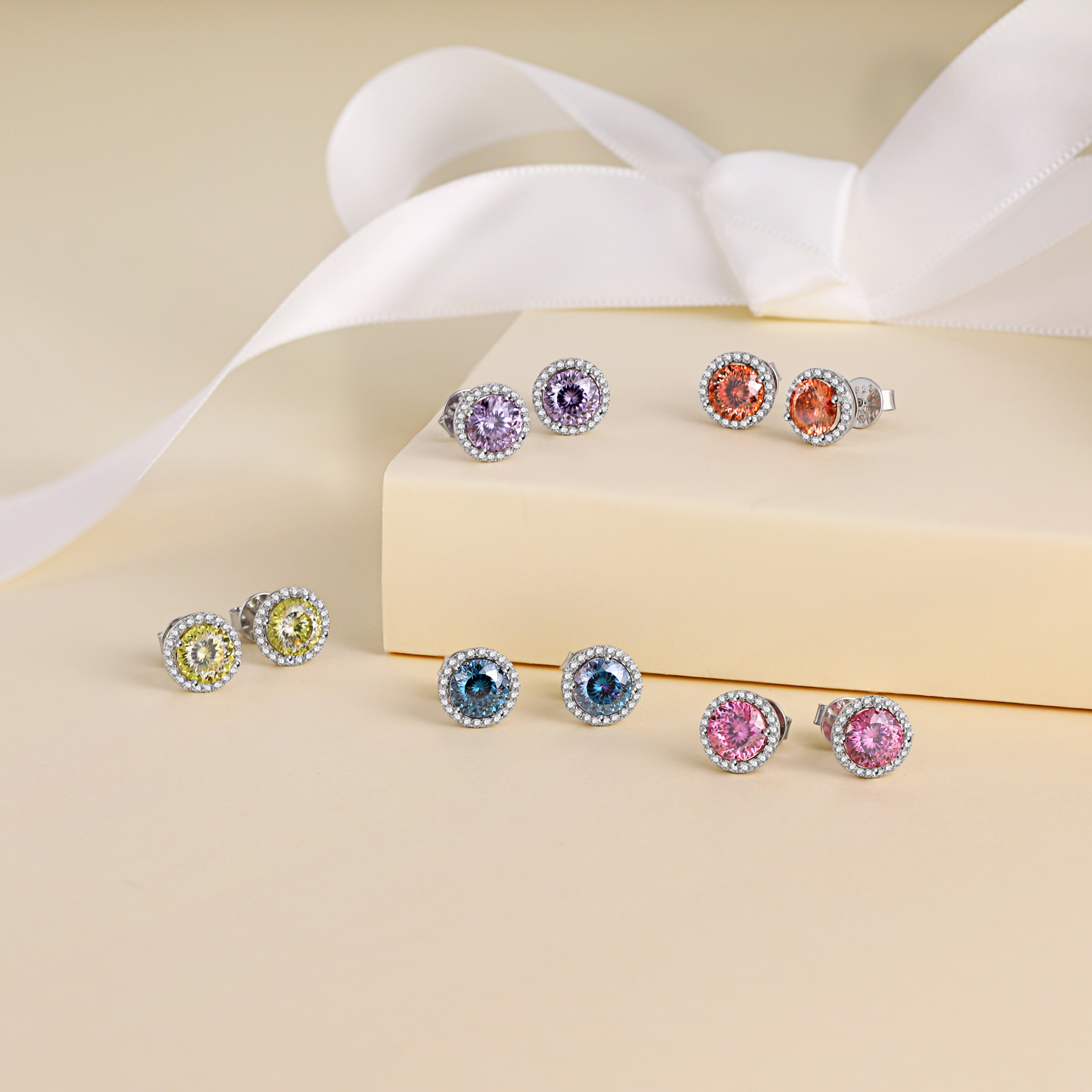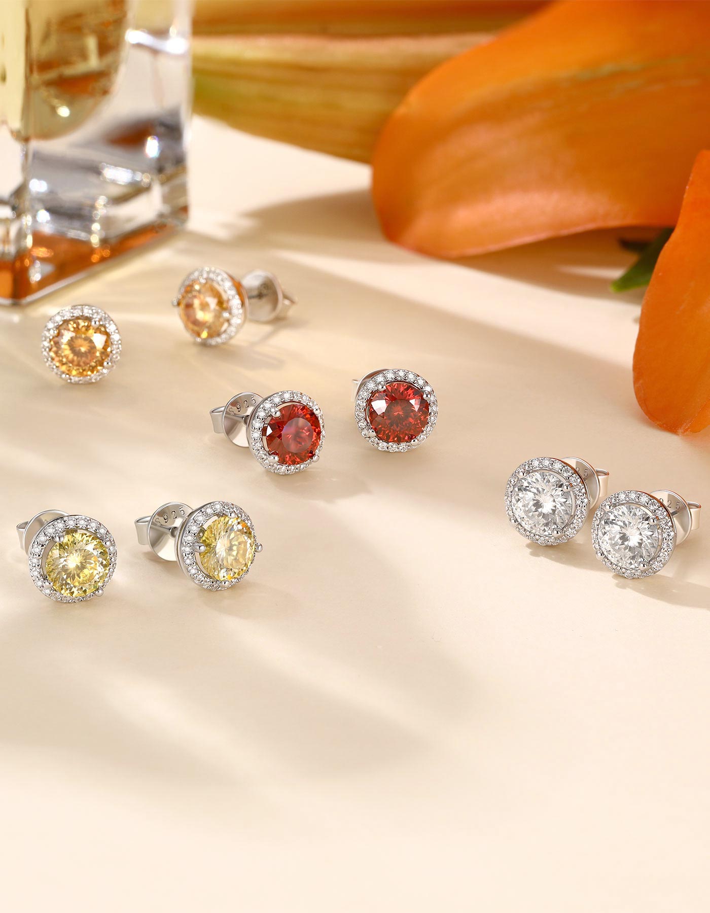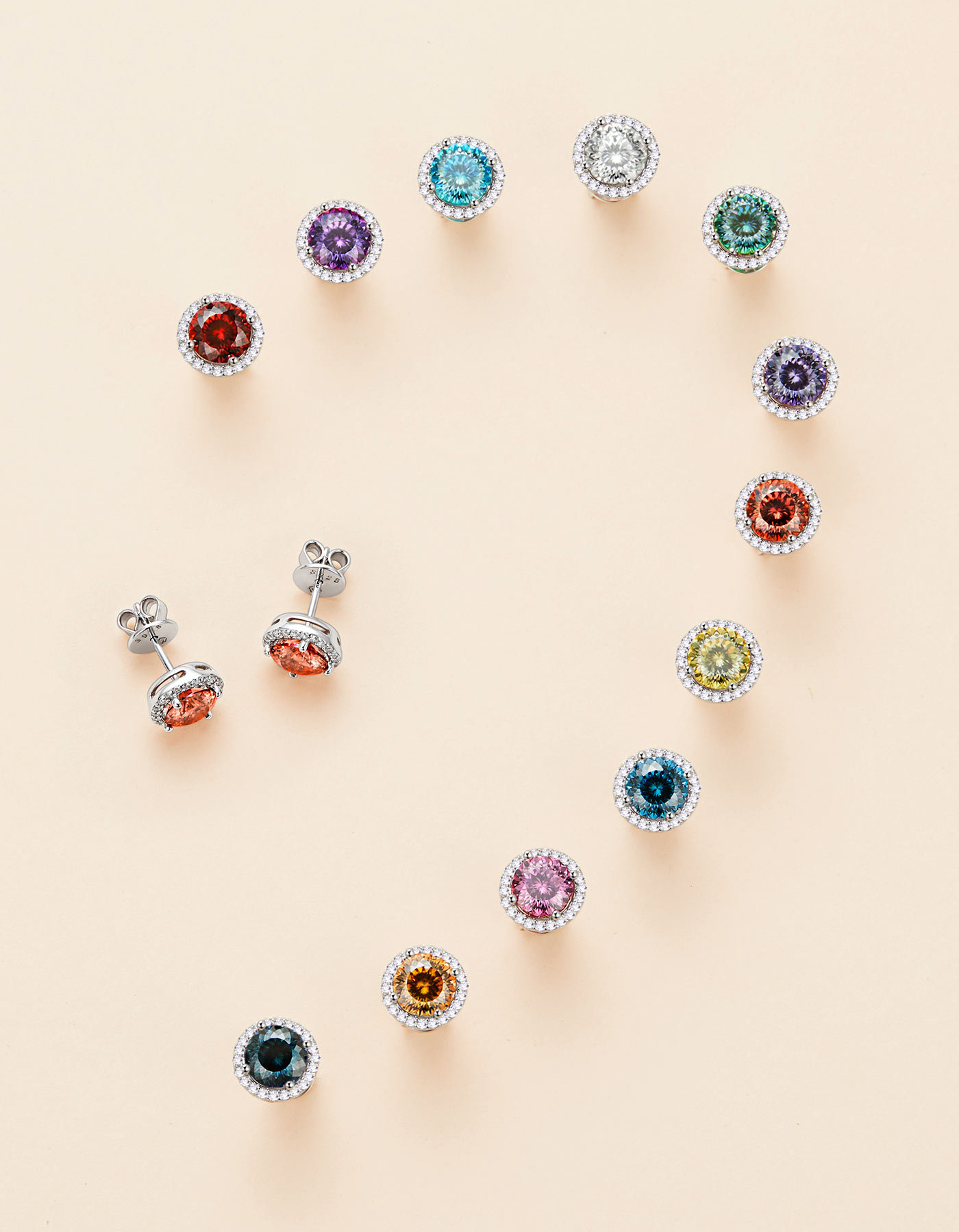 These gorgeous Moissanite birthstone stud earrings showcase a 1 CT beautifully round cut D-color moissanite stone made by MomentWish. Crafted in 925 sterling silver with a halo side gem design made of moissanite. This halo Moissanite Birthstone earrings will make a sentimental surprise for your lover.