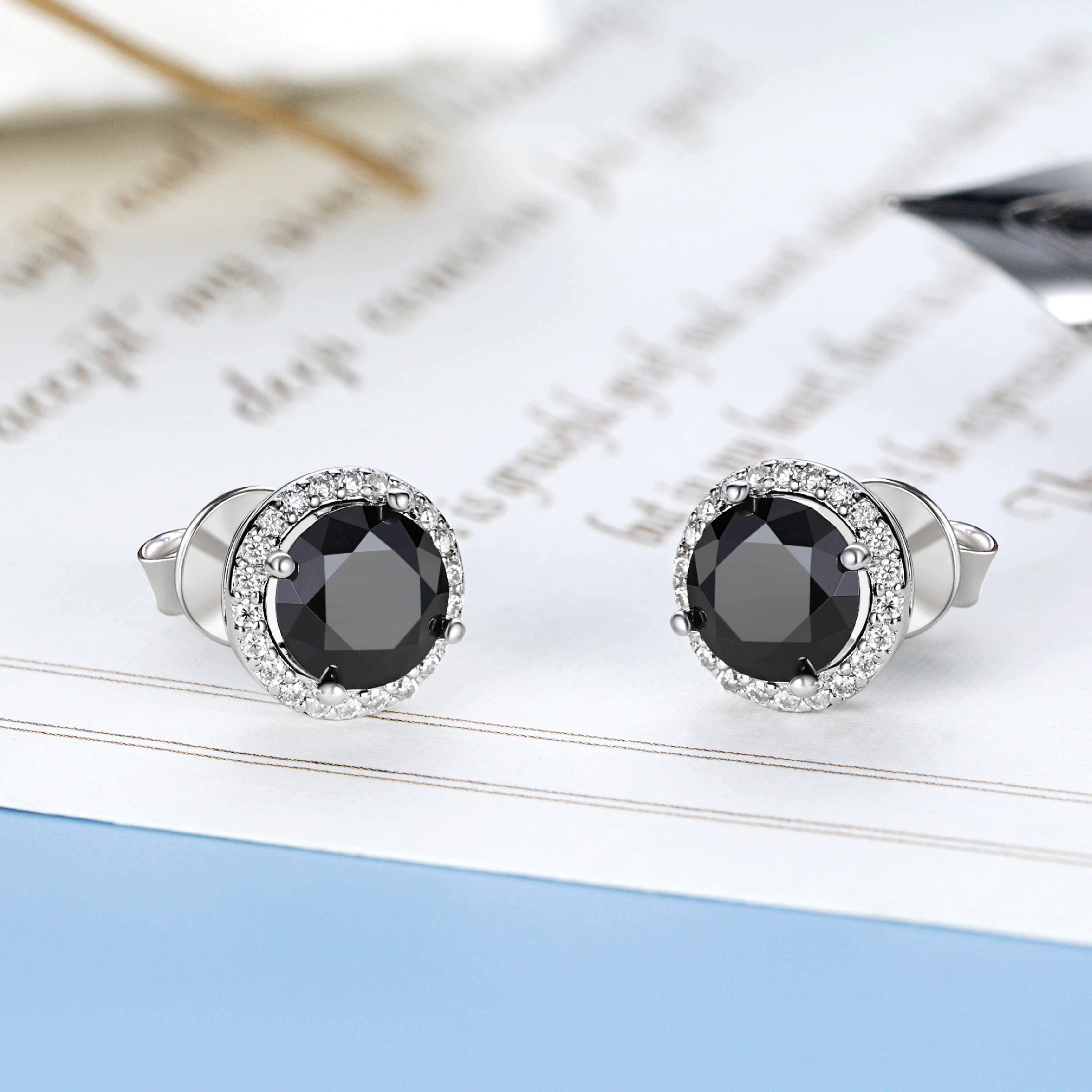 With a halo of 0.09 ct micro-pave set moissanite that encompasses the center 0.5 ct 4 prong set moissanite diamond, these moissanite earrings create incredible brilliance. These round-cut earrings are suitable for any occasion, capturing everyone's attention.