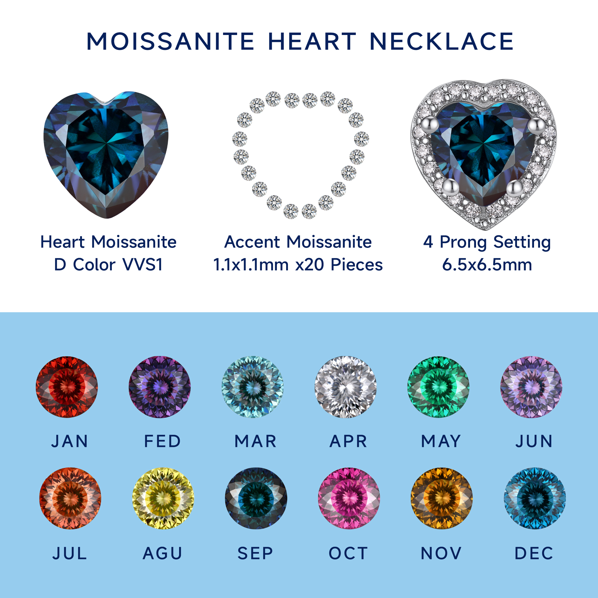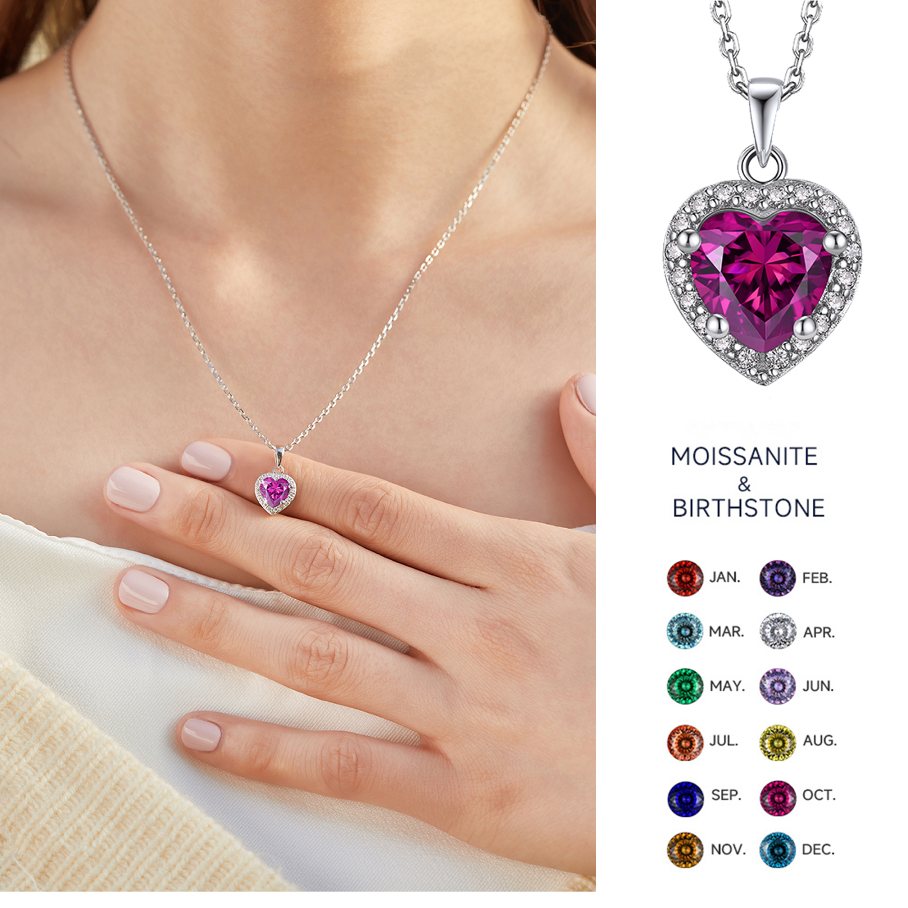 【12-Month Birthstones】➣ This upgraded birthstone necklace with excellent polished craft, more sparkling and clean. Each birthstone has been carefully selected and has passed the GRA moissanite certificate, which is traceable and with a unique code. Pendent