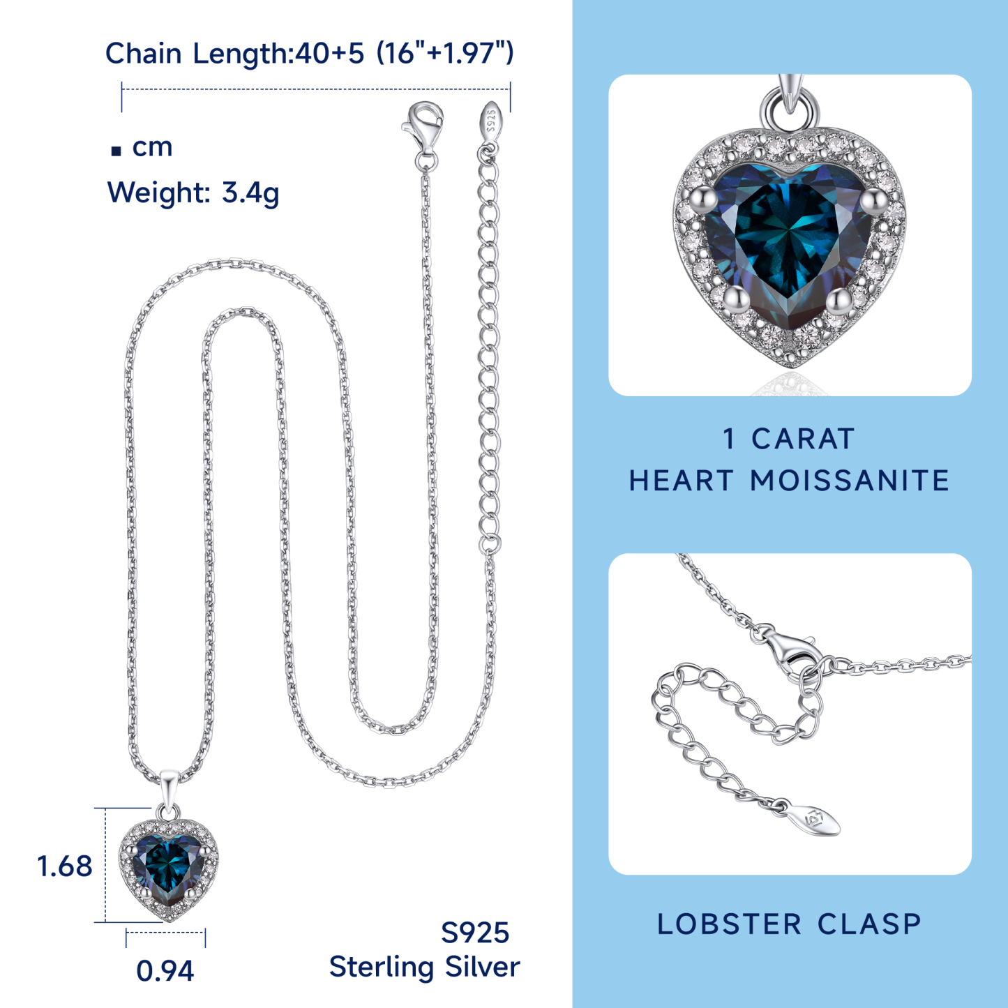 Size:1.28''x1.8''| Chain Length:16''+2'' Extender | Lobster Clasps.