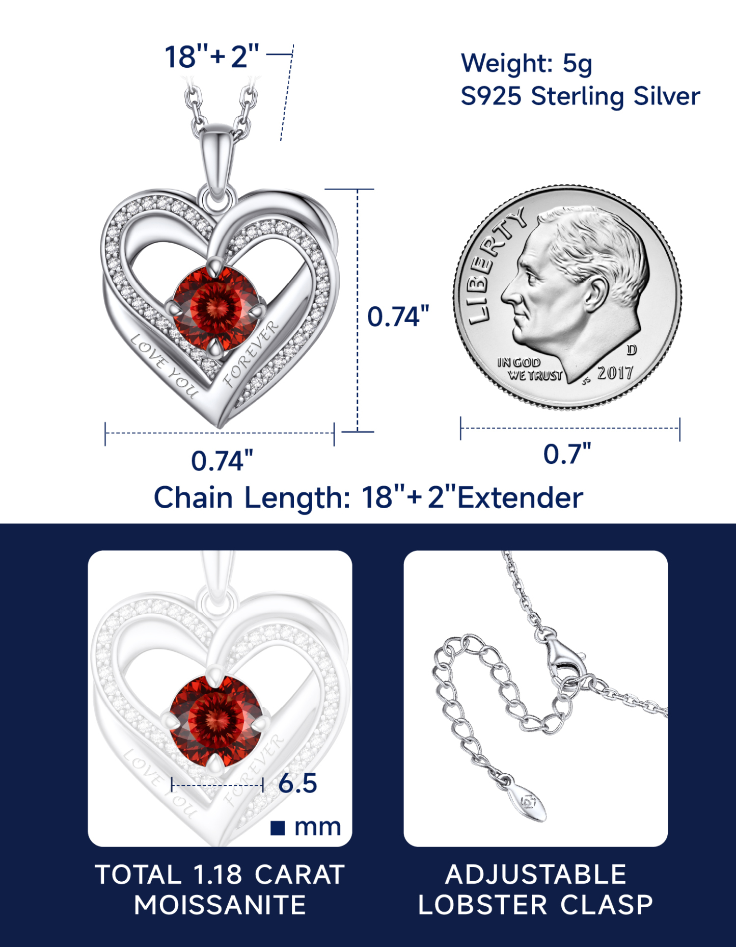 【Gifts for Her】➣ The love heart necklace for women with D color VVS1 moissanite symbolizes love for each other. Lab-created diamond pendant necklace can be an unique and meaningful birthday gifts, anniversary gifts for yourself or someone special. Main