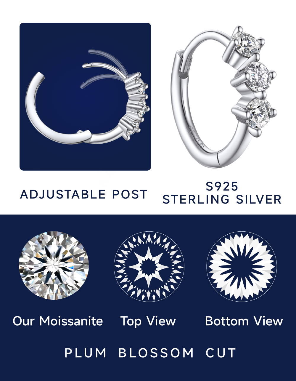 The hoop earrings feature moissanite diamonds with brilliance, setting on an sterling silver post with a hinge closure for a secure fit. Sparkle brighter than diamonds with our Moissanite Hoop Earrings - the perfect timeless accessory for any outfit!