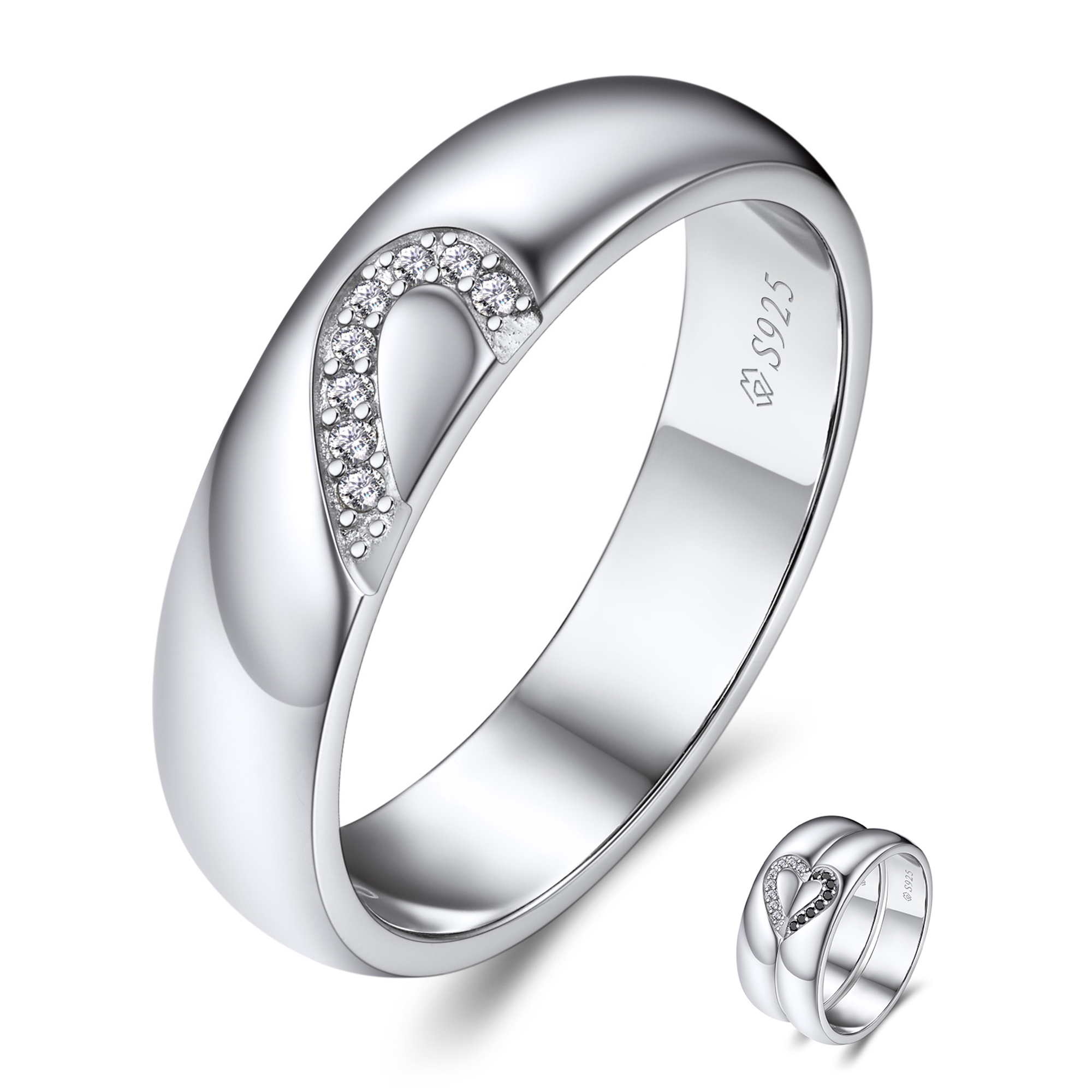 【Promise Rings for Couples】➣The design of half heart ring band is made of white and black moissanite, symbolizing eternal love and connection with your partner. The wedding band for couples is also as an excellent gift for anniversary. Also you can wear it as a necklace with a chain to match your couples' outfit, adding a sweet and romantic love element. Give your promise to the one you love.