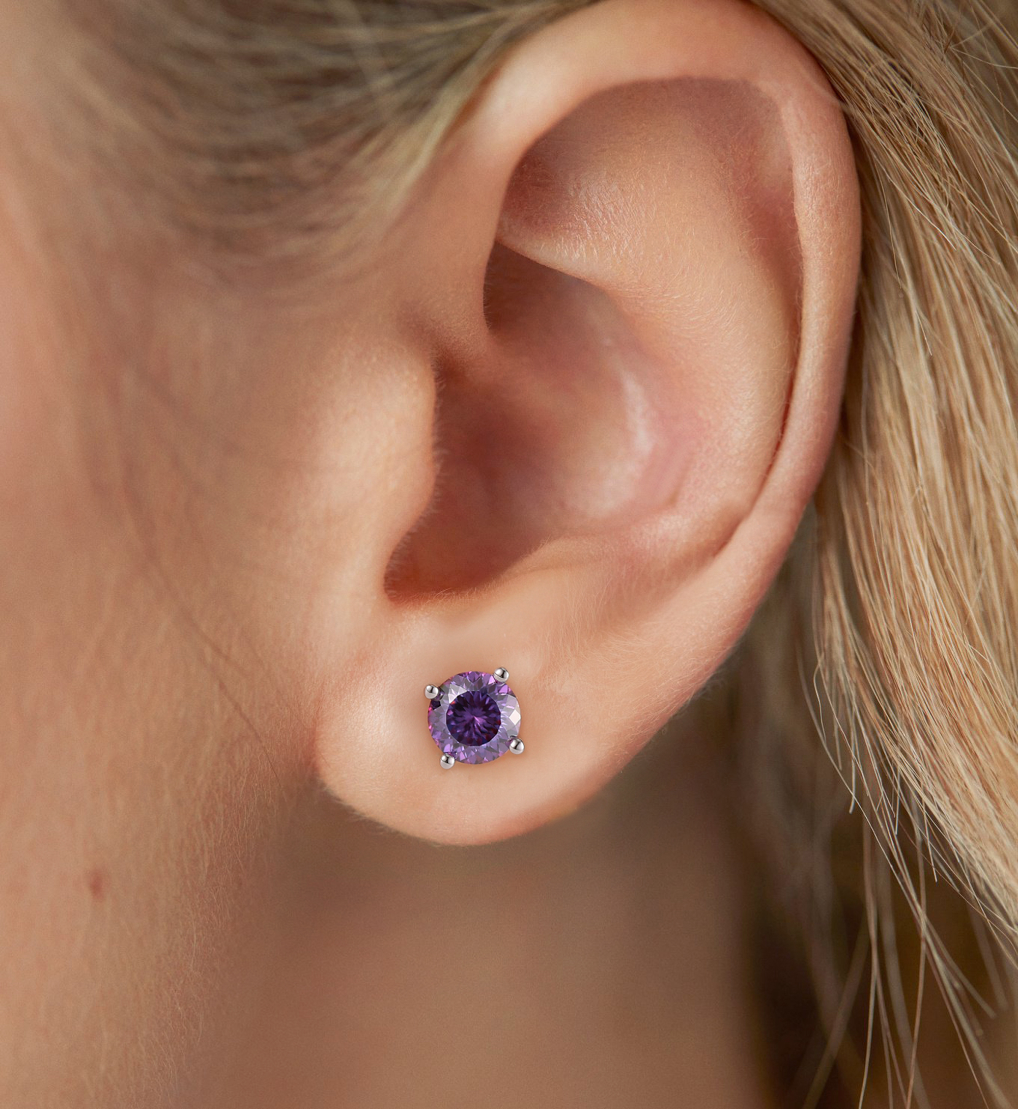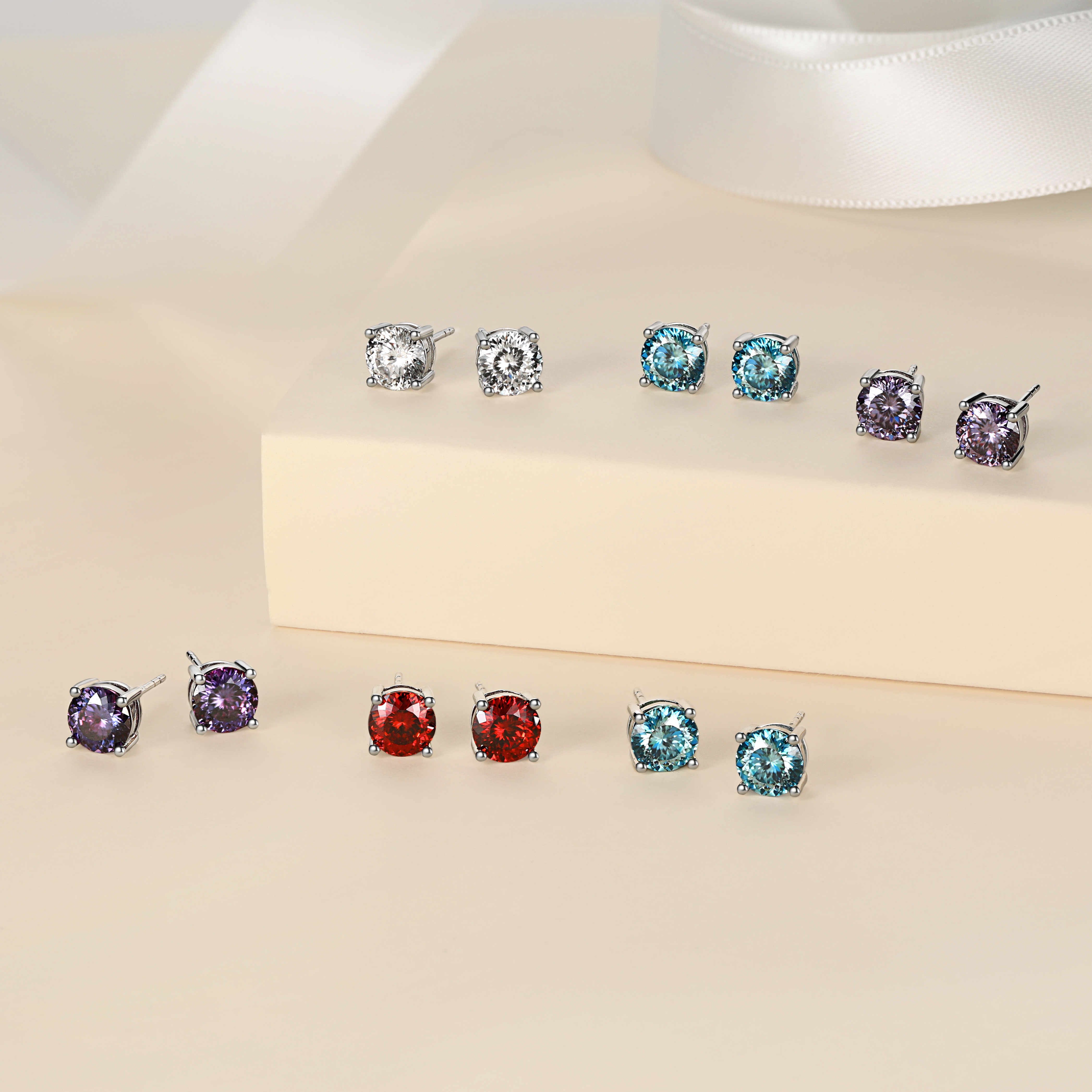 Handcrafted 4-prong birthstone stud earrings for women add a glint of exceptional brilliance to each and every day. These round-cut moissanite earrings are suitable for women and men for any occasion, capturing everyone's attention.