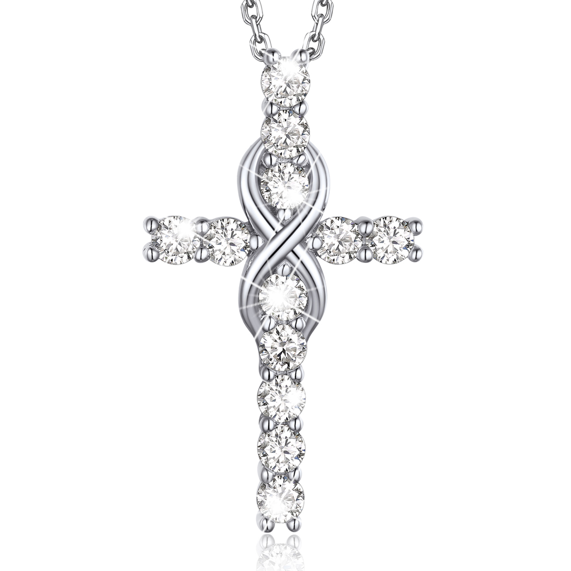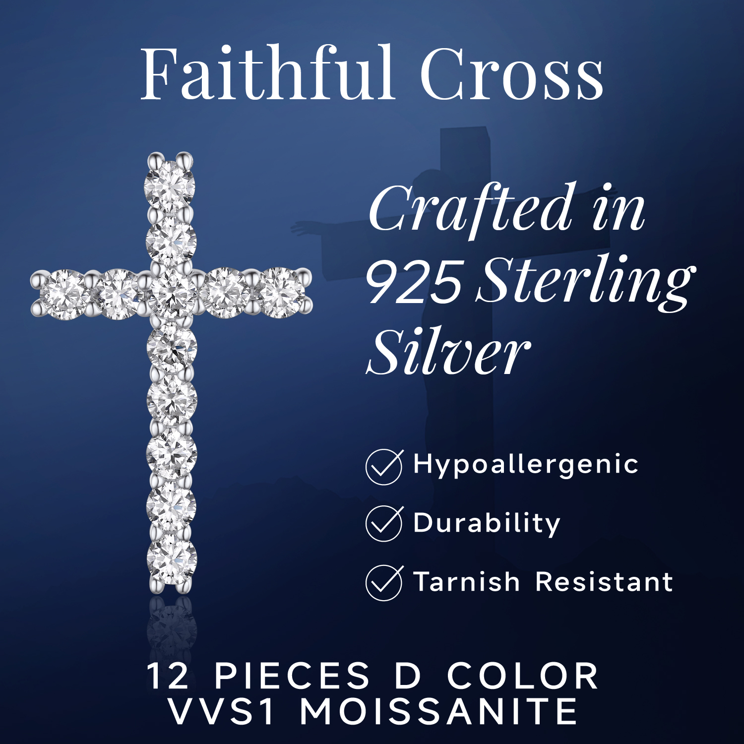 【Dainty Cross Necklace for Women】➣ Celebrate faith with this elegant moissanite necklace. Featuring 12 round moissanite (1.2 ctw) on a sterling silver cross, it symbolizes divine completeness. Perfect as first Communion gifts or anniversary gifts, this silver cross necklace combines elegance with deep meaning.