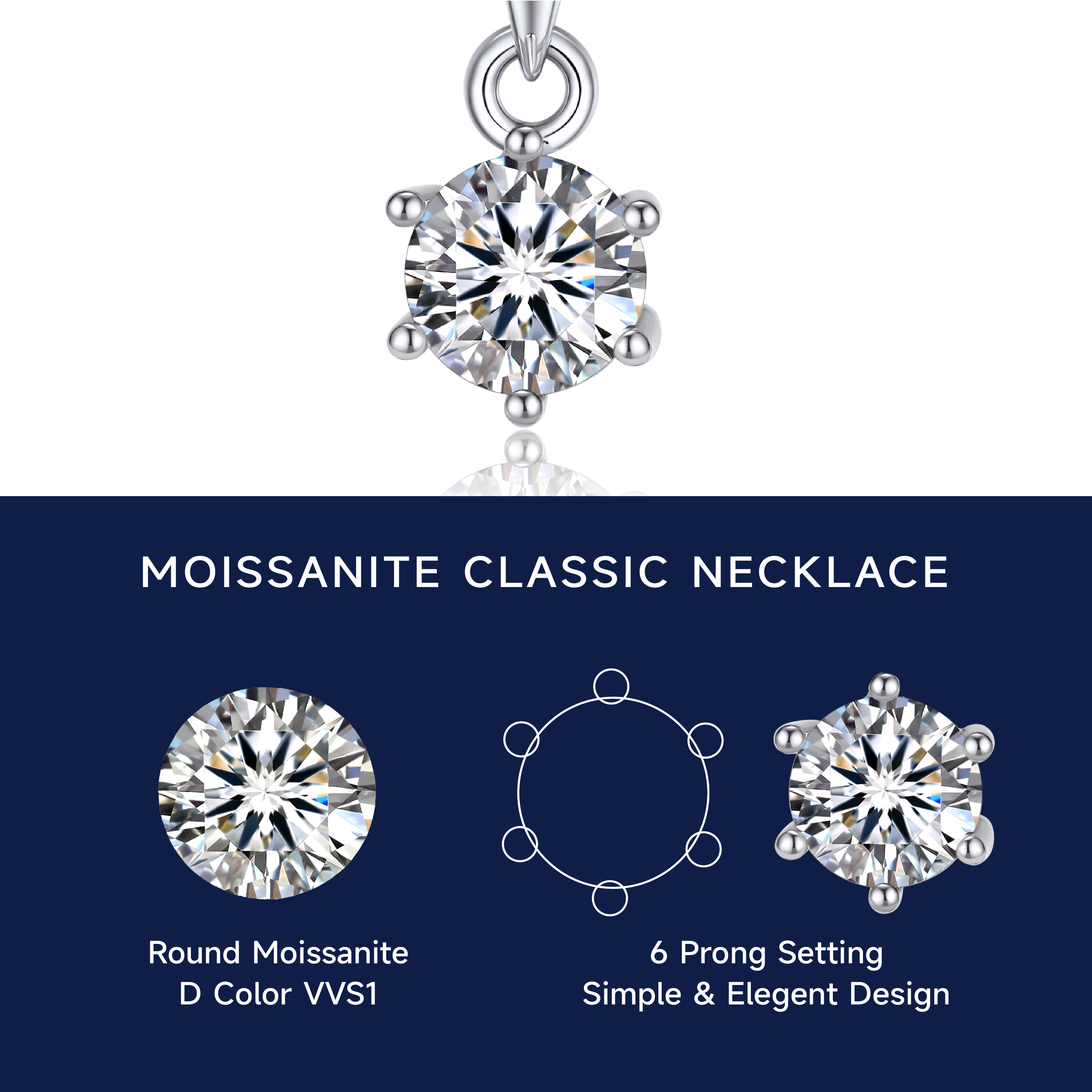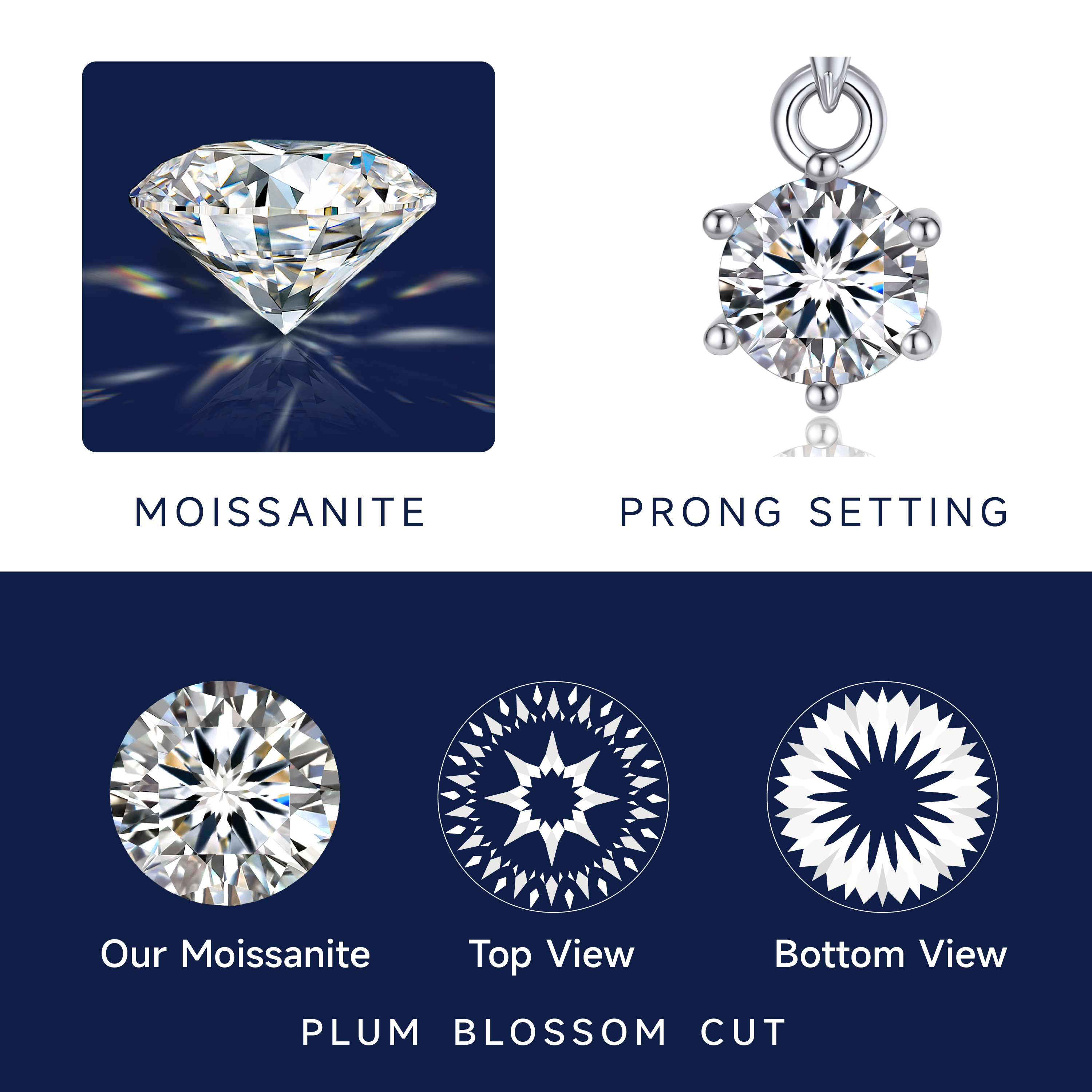 This moissanite pendant necklace is adopted upgraded plum blossom cut and excellent polished craft, more sparkling and clean. Handcrafted 6 prong moissanite necklace adds a glint of exceptional brilliance to each and every day. This delicate solitaire moissanite pendant necklace are suitable for women for any occasions, capturing everyone's attention.