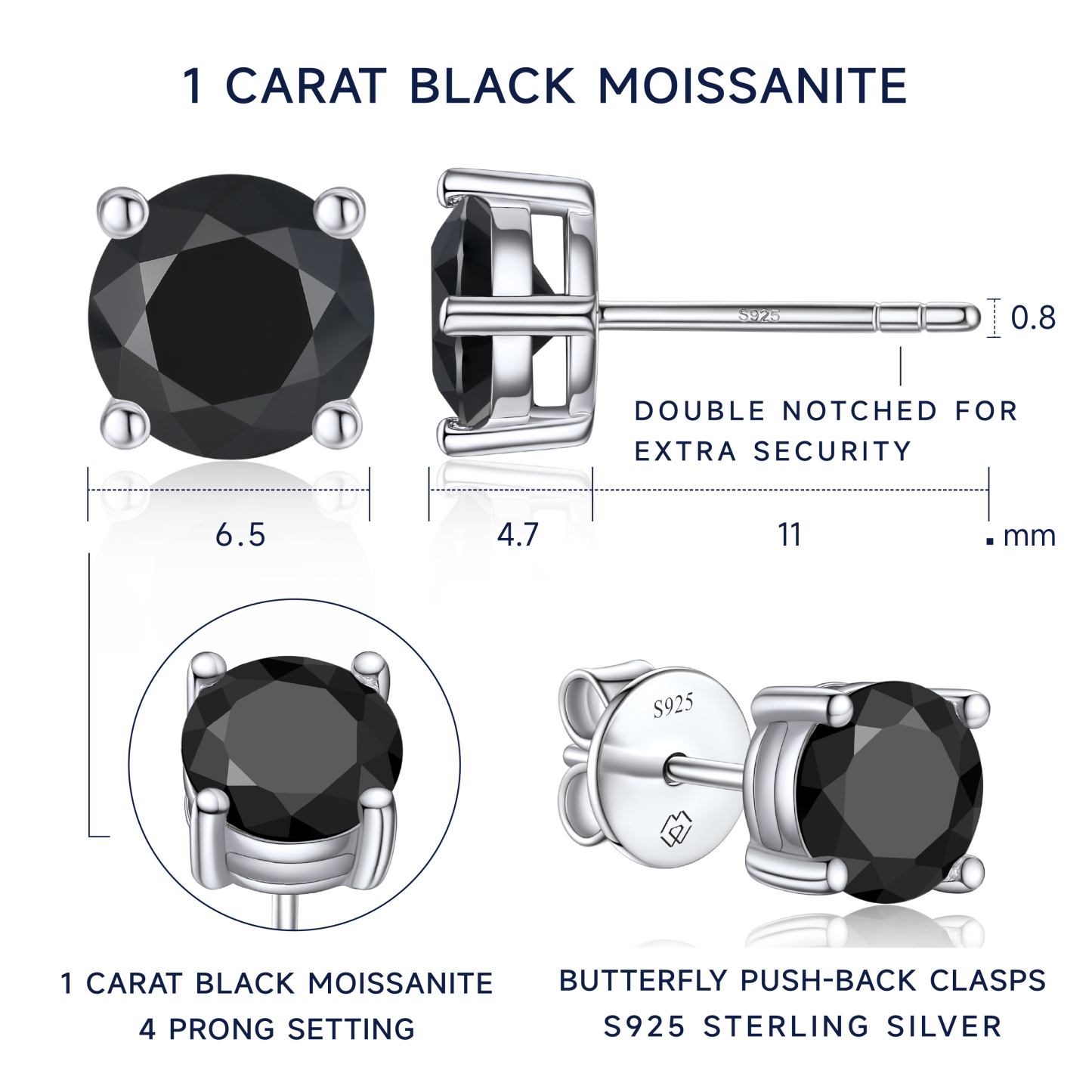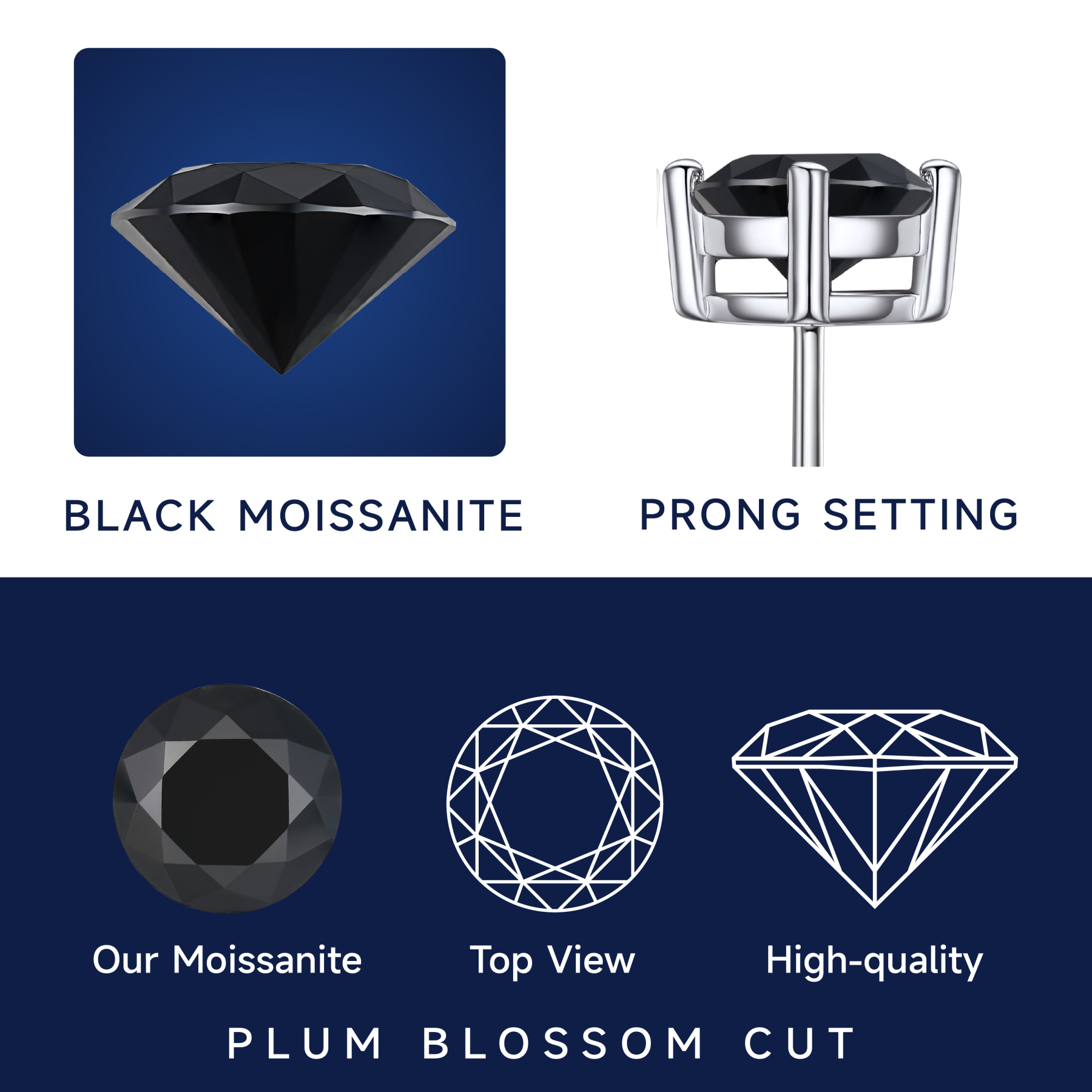 Handcrafted 4-prong black moissanite earrings studs add a glint of exceptional brilliance to each and every day. These round-cut earrings are suitable for women and men to match with daily outfit, or gift for someone important, which will make you stand out with these black moissanite earrings studs.
