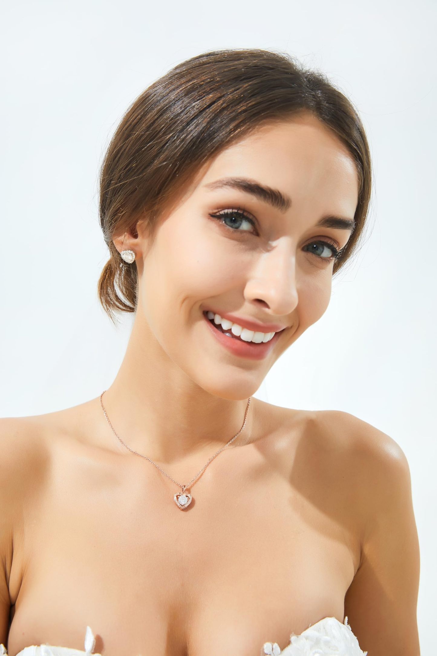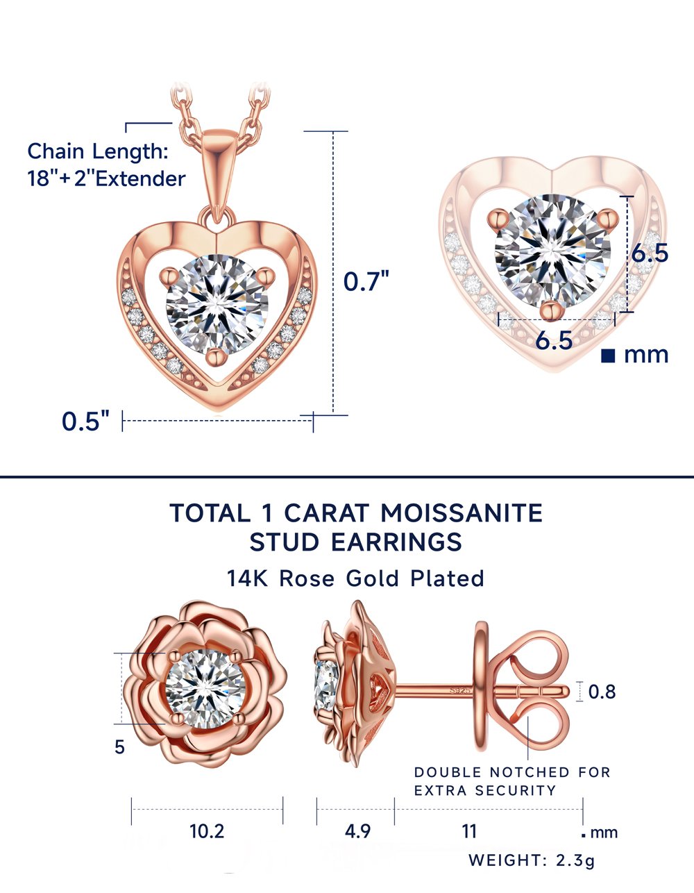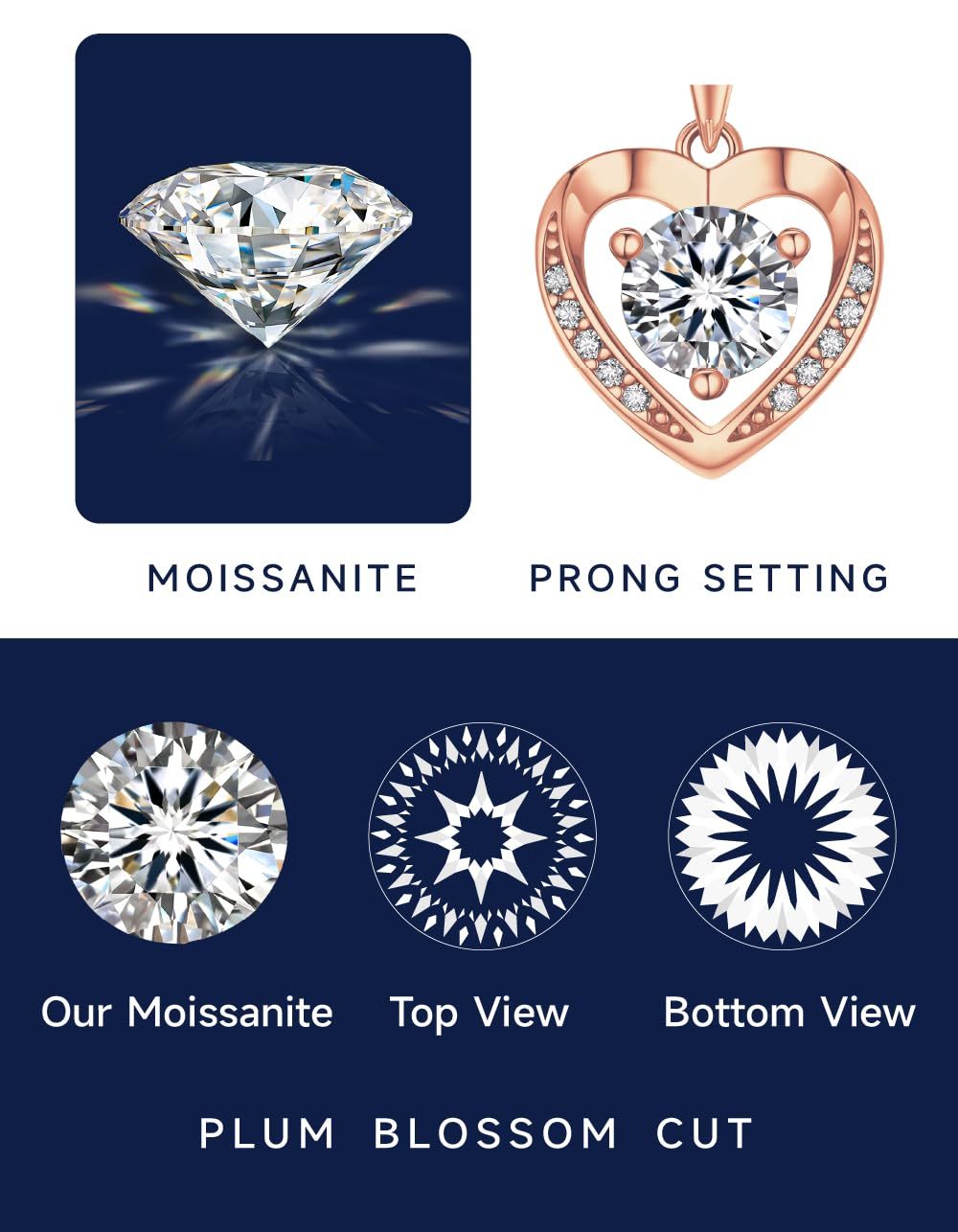 【Dainty Rose Gold Necklace】➣ This heart rose gold necklace for women is a perfect expression of love. Features a round brilliant cut centre moissanite 6.5mm/1ct 3 prong setting. With 10 accent moissanite, this silver heart pendant can be made as an ideal birthday, anniversary, wedding gifts.